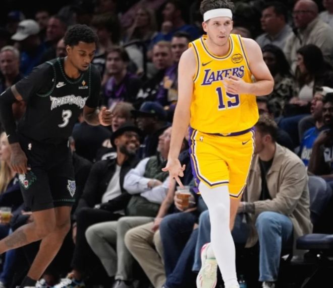 首节比赛森林狼率先发力,兰德尔三分与迪温琴佐后撤步三分连中,搭配麦克丹尼尔斯的得分打出9-0高潮。湖人多点回应,克内克特高效输出,但森林狼凭借火热手感保持领先。次节里夫斯开启统治模式,得分助攻一肩挑盘活进攻,湖人趁机反超比分。森林狼命中率骤降,仅靠兰德尔连续得分止血,半场结束湖人以62-58领先4分。