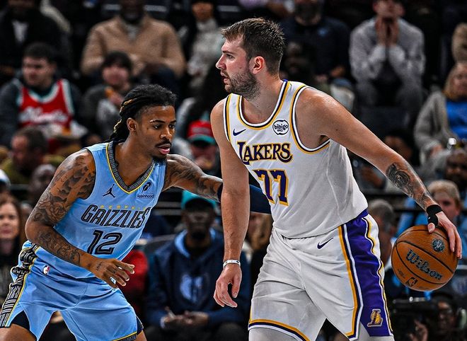 搞笑,湖人队东契奇与里夫斯的互动在灰熊队比赛后迅速走红